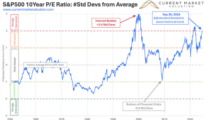 Gráfico: Este modelo nos indica que las desviaciones estándar se encuentran en niveles calificados como sobrevalorados o altamente sobrevalorados. (Newsletter final 2024)