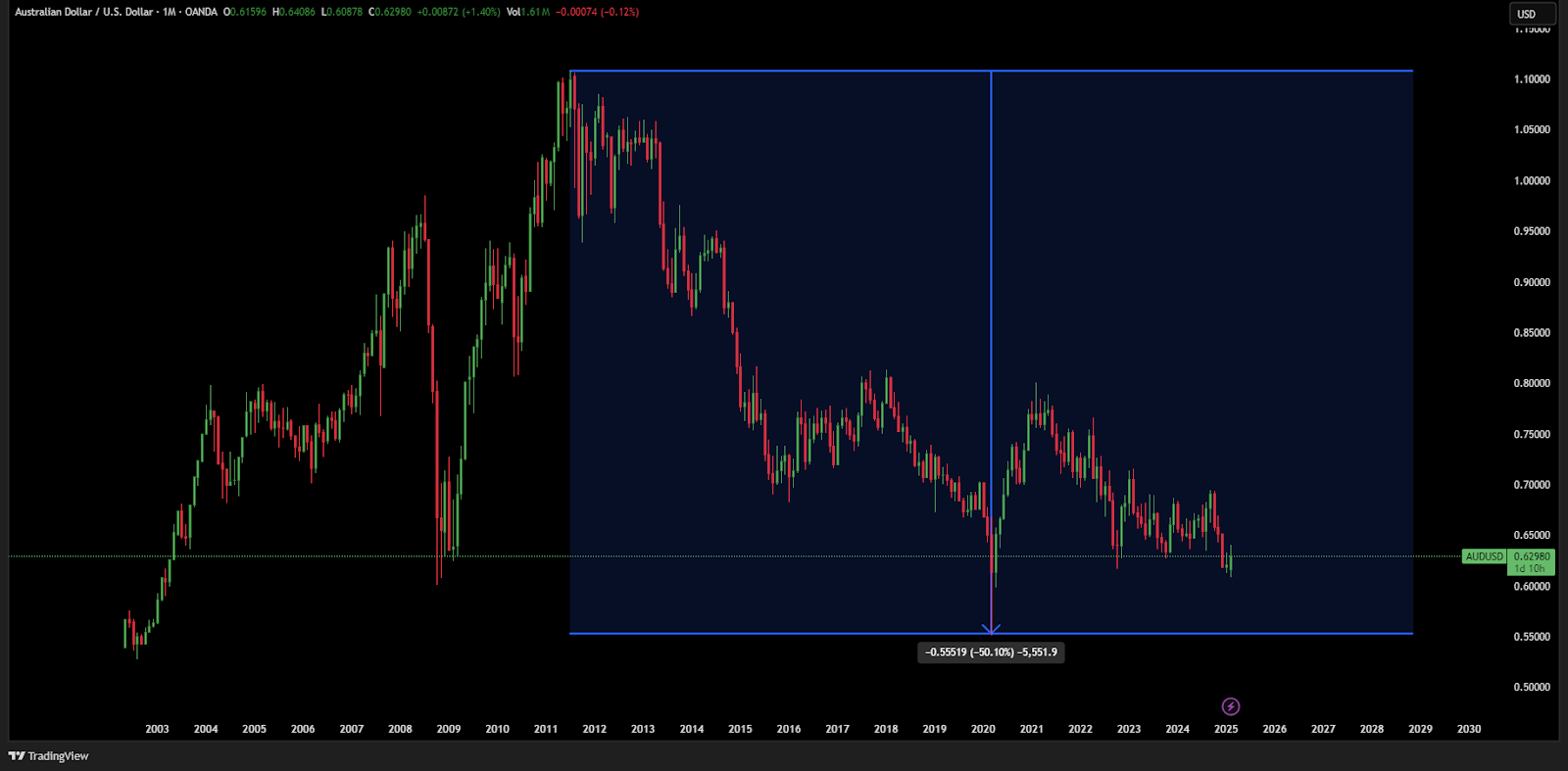 Veamos cómo estos factores han moldeado el comportamiento del AUD/USD en las últimas décadas: