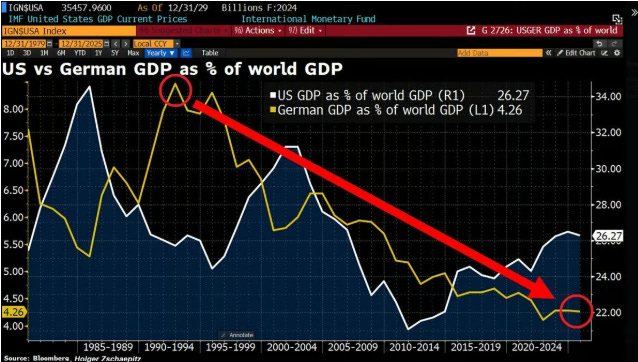 Comparativa del PIB estadounidense frente al PIB alemán (Global Markets Investor)