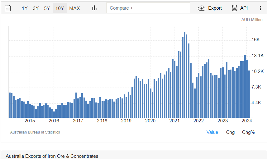 🔹El impacto del hierro en las exportaciones australianas.