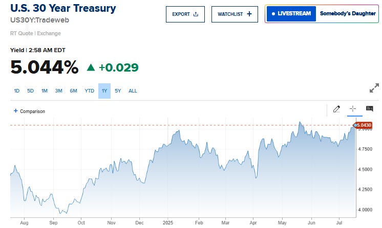 También el bono a 30 años superó momentáneamente el 5% de rendimiento.