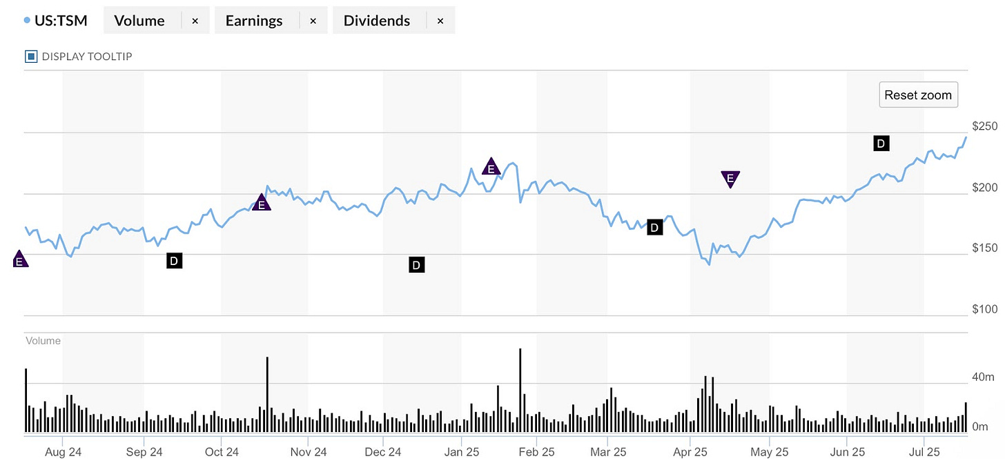 En el segundo trimestre de 2025, la compañía reportó un beneficio neto de NT$398,3 mil millones (~US$13.530 millones), un impresionante crecimiento del +60,7 % interanual y muy por encima del consenso del mercado (NT$377,9 mil millones según LSEG SmartEstimate).