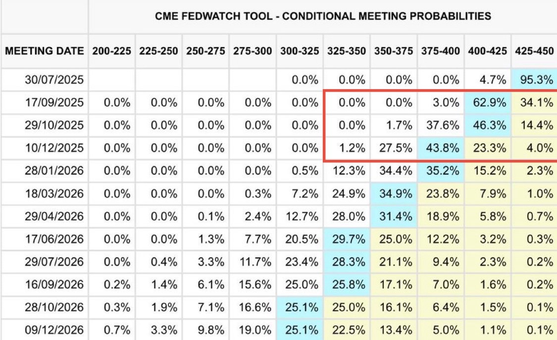 Tras el dato de junio, el mercado sigue asignando cerca de un 60% de probabilidad a que la Fed inicie reducciones de tasas en septiembre.