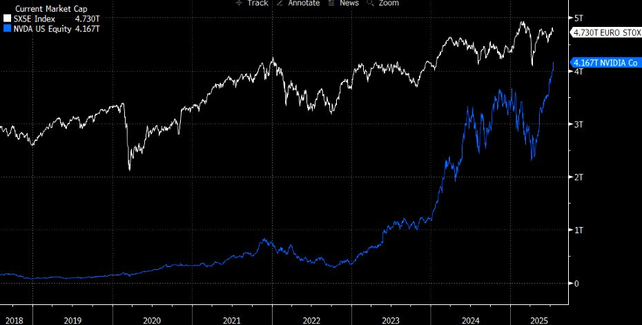 Nvidia cerca de igualar al EuroStoxx en capitalización: