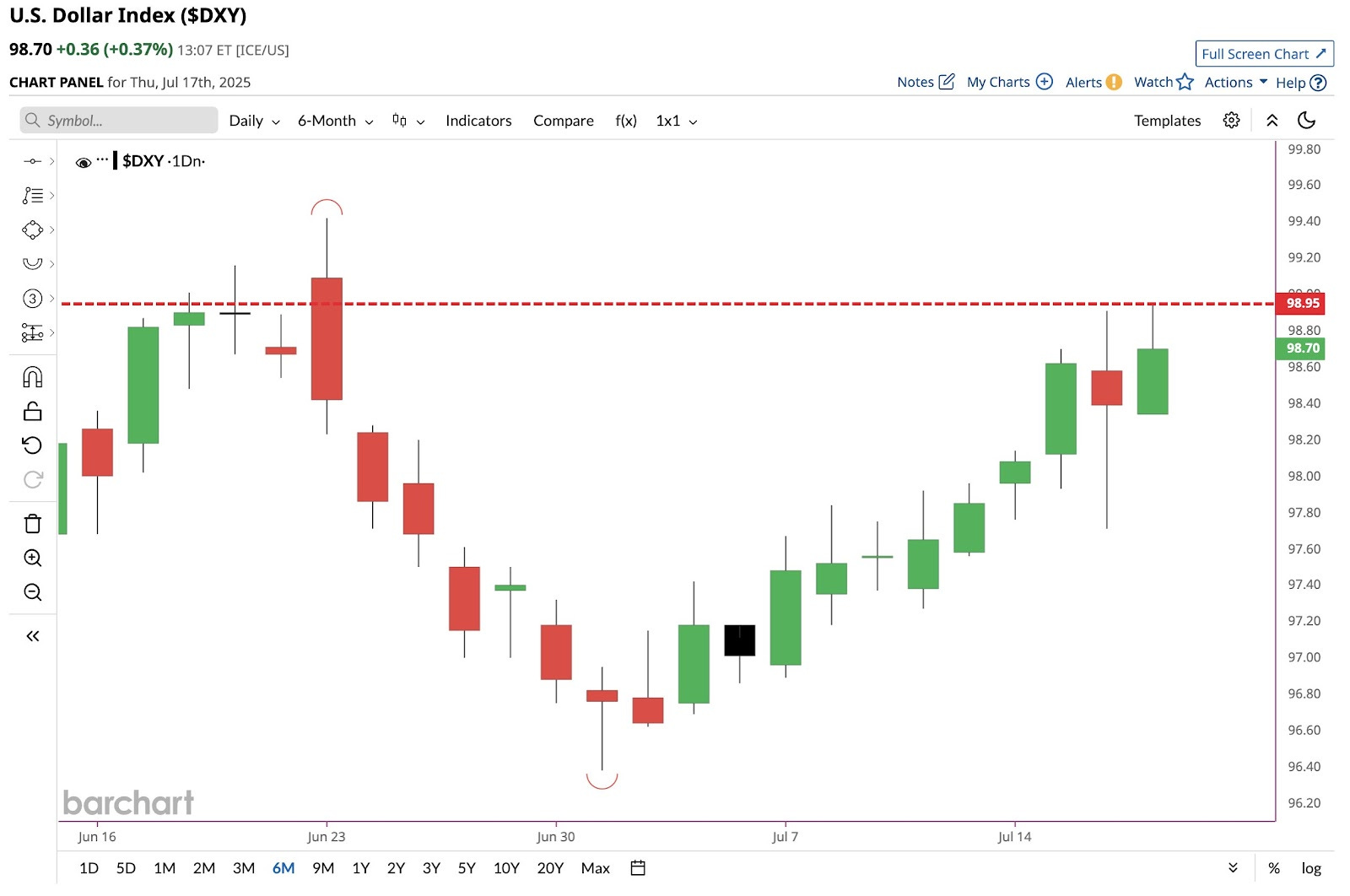 De hecho, los inversionistas prácticamente descartan un recorte en la reunión de este mes: las probabilidades implícitas en los futuros superan el 97% a que la Fed mantenga las tasas en pausa en la reunión del 29-30 de julio.