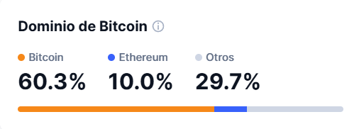 🔹La dominancia Bitcoin Febrero 2025, frente a Ethereum y Otros Criptoactivos: La dominancia es una métrica utilizada para medir la cuota de mercado relativa o el dominio de Bitcoin en el mercado general de criptomonedas.