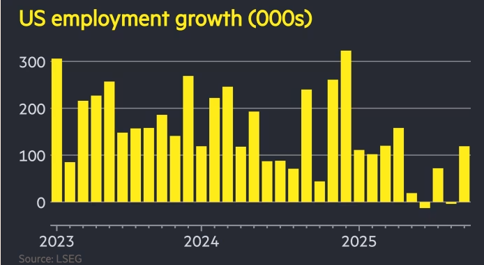 Según el informe Bureau of Labor Statistics (BLS) del 20 de noviembre de 2025 sobre la situación laboral de septiembre 2025: el empleo no agrícola (NFP) aumentó en 119.000 puestos frente a expectativas de ≈ 50.000.