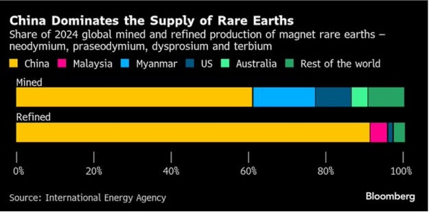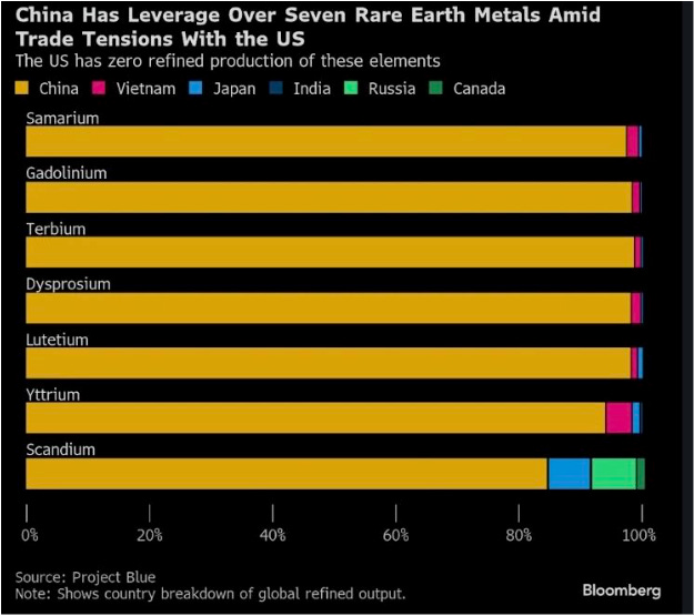 Según datos recientes, China controla una proporción muy alta de la capacidad de procesamiento de tierras raras a nivel mundial.