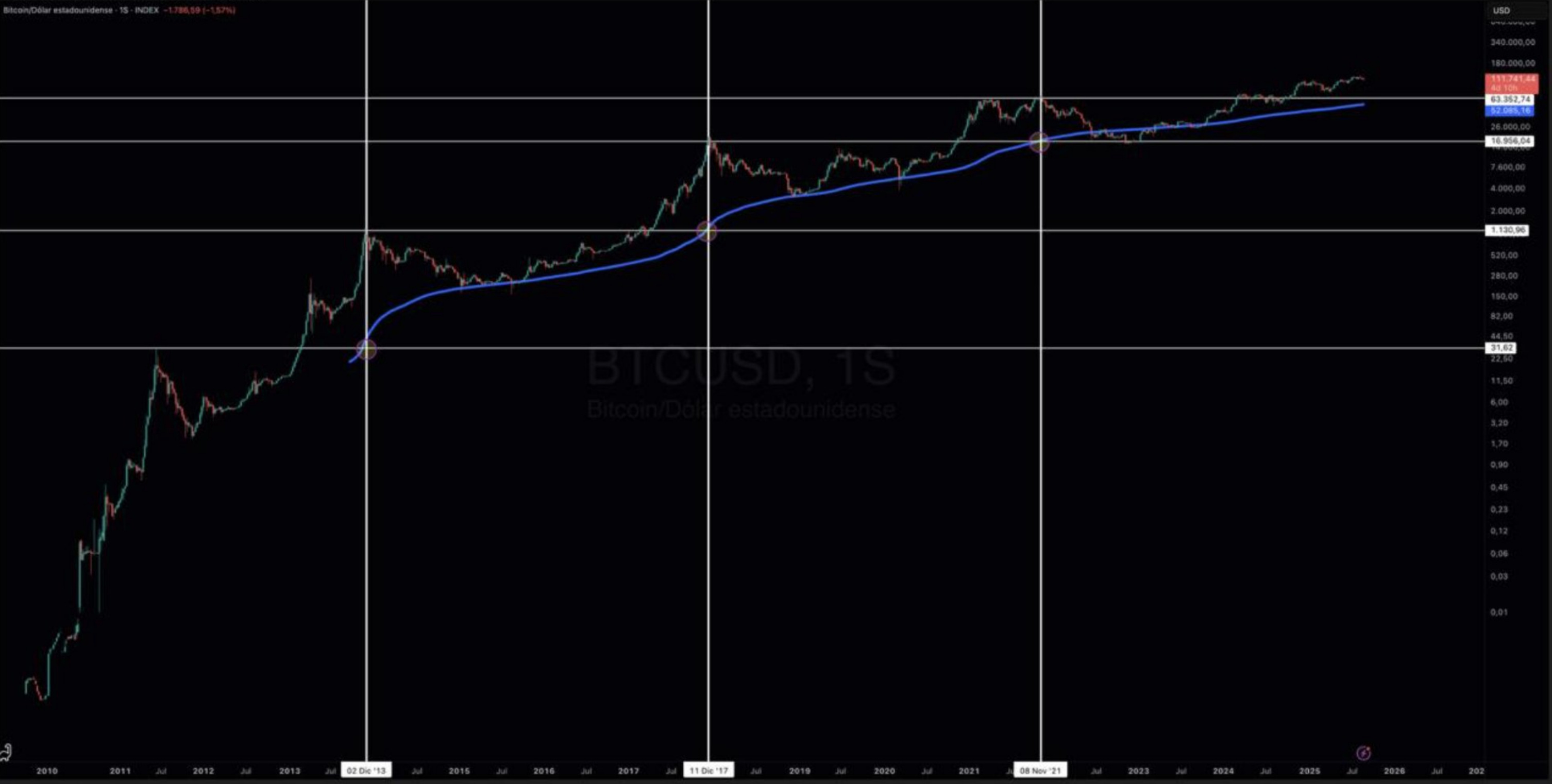 El ciclo de Bitcoin aún no ha terminado, ya que históricamente concluye cuando la SMA200 semanal rompe por encima de los máximos históricos del ciclo anterior. Y esto todavía no ha ocurrido.