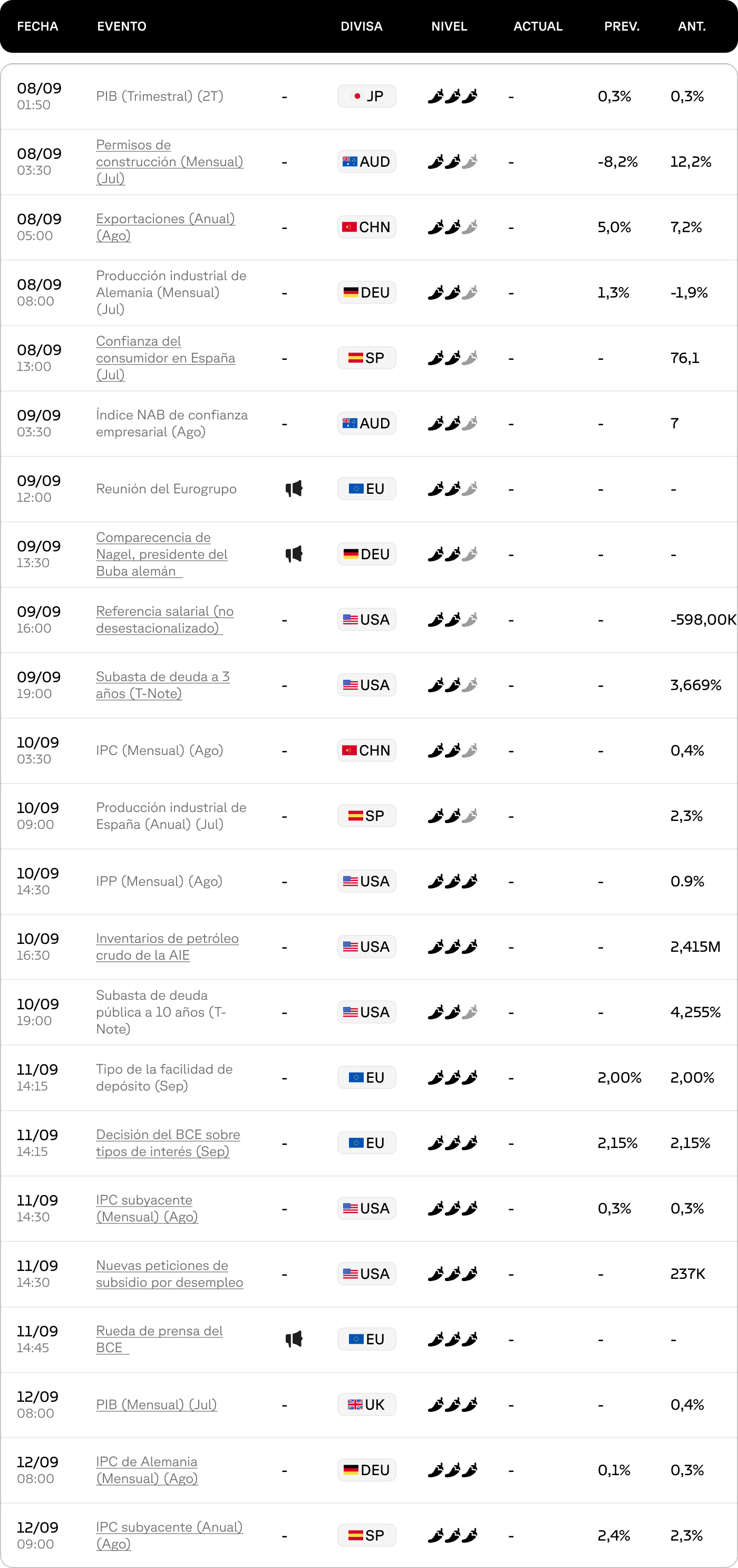 📌 Los 5 eventos que moverán divisas, bonos y acciones del 8 al 12 de septiembre.