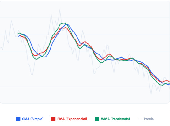 Entre ambos enfoques aparece la media móvil ponderada (WMA), que busca un equilibrio entre estabilidad y sensibilidad.