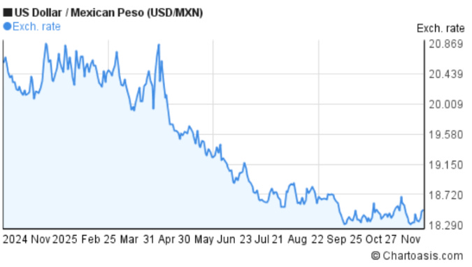 En la edición de hoy analizamos cómo encajan estos elementos en un entorno donde la Reserva Federal se acerca a un ciclo de normalización, Banxico recorta con cautela y los mercados globales operan en un equilibrio frágil entre expectativas de crecimiento y temores de desaceleración. El MXN puede beneficiarse de un dólar debilitándose, de un entorno de volatilidad contenida y de la narrativa estructural del nearshoring, pero sus riesgos siguen siendo claros: un giro inesperado de la Fed, un repunte del VIX o un deterioro político pueden cambiar la foto rápidamente.