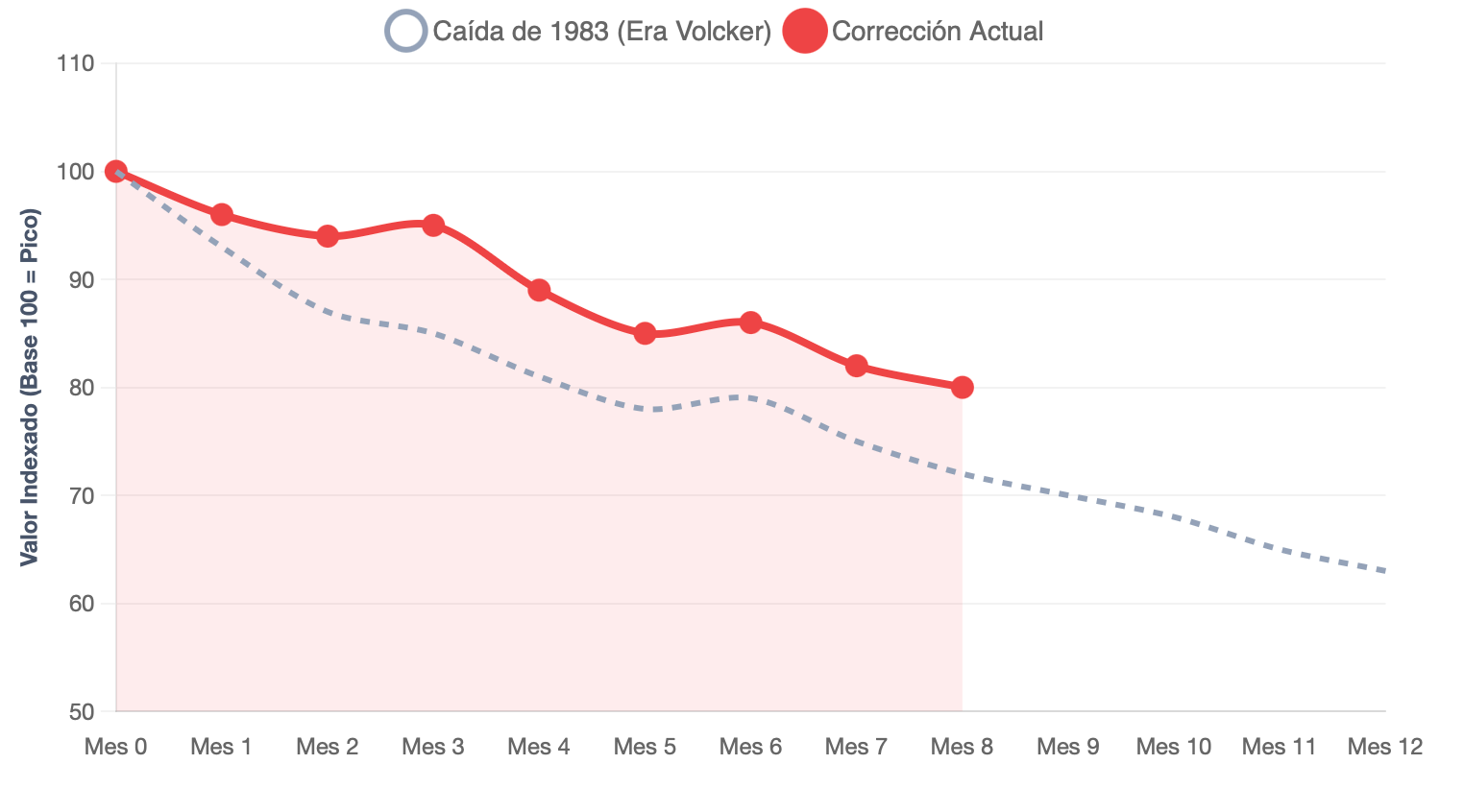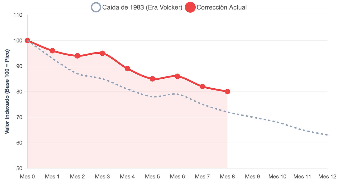 Gráfico comparativo: oro actual vs 1983.