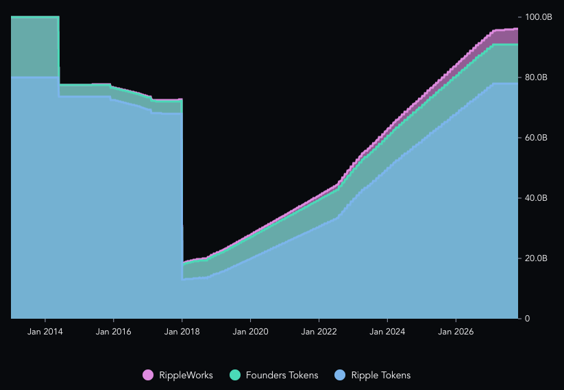 Suministro finito: 100 mil millones de tokens, de los cuales una parte significativa fue asignada a Ripple Labs y sus cofundadores en el momento de su creación.