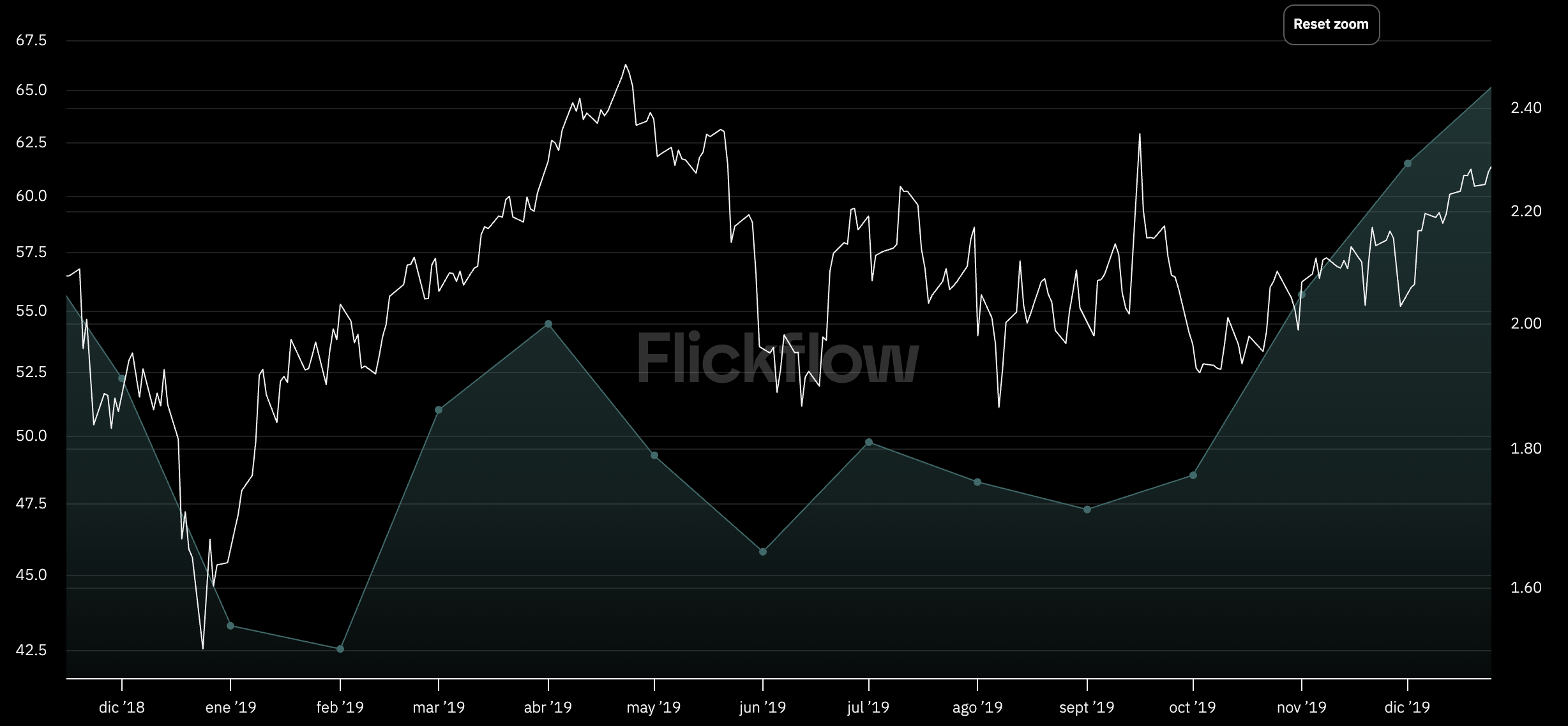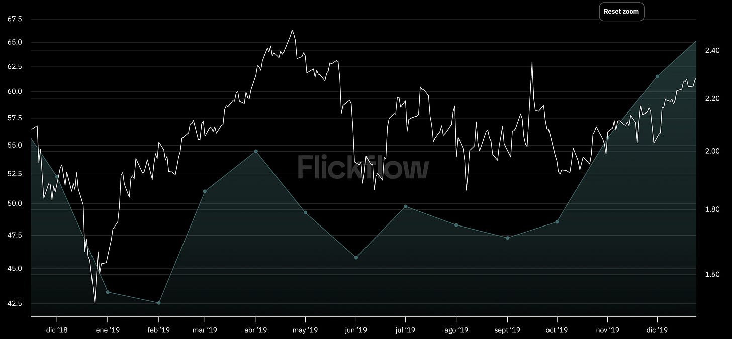 Ejemplo: 2019 cierre de Ormuz: Inflación reducida pero el precio del petróleo se mantiene lateral y la inflación vuelve a repuntar.