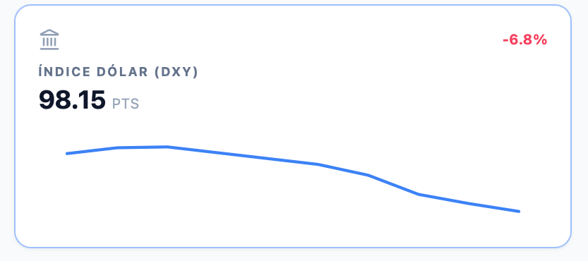 El índice DXY ha sufrido una caída abrupta hasta la zona de 98, reflejando una rotación clara fuera de activos refugio.