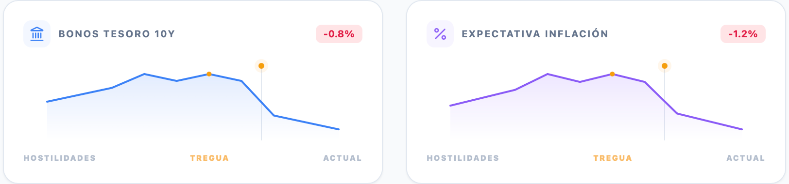 Eventos similares, como las tensiones en el Estrecho de Ormuz en 2019 o la Guerra del Golfo, muestran patrones comparables: caídas bruscas del petróleo tras anuncios de distensión, seguidas de periodos de inflación persistente debido a disrupciones previas.
